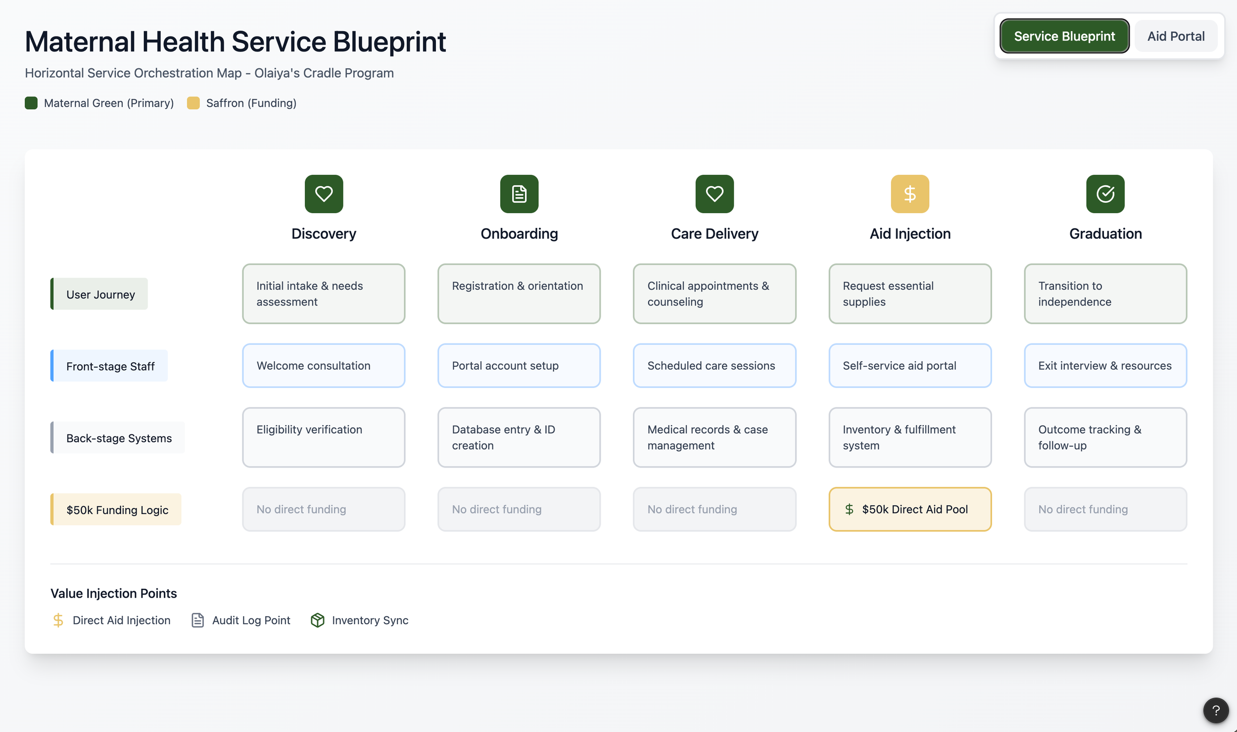 Service design in the public sector requires a rigorous balance of financial viability and human empathy. For Olaiya’s Cradle, I architected a Strategic Service Roadmap that secured $50k in funding by quantifying the operational gaps in maternal health delivery. By treating the program as a living ecosystem, I standardized onboarding and support protocols, ensuring the service remained resilient as it scaled to meet growing community demand.